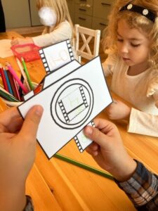 Připravila si pro děti povídání o své profesi, ukázku toho, co vše fotograf potřebuje k práci i malé tématické tvoření.